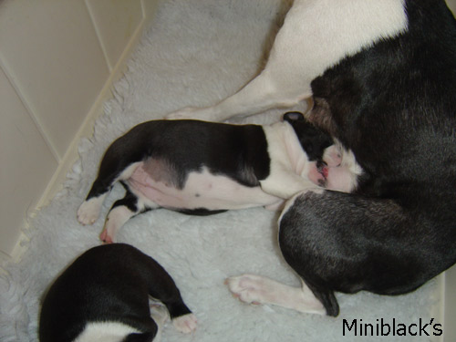 Miniblack's Dream On Doll ylpeä äiti tunnin vanhojen pentujensa kanssa -proud mother |