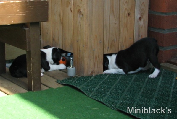 8vk:Rocky ja Tico leikintuiskeessa -8weeks:Rocky and Tico playing |