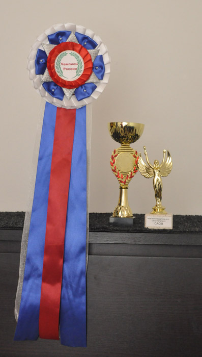 Venäläiisten valiokoirien edestä. Molemmat saivat arvokkaat cacibit ja näin ollen